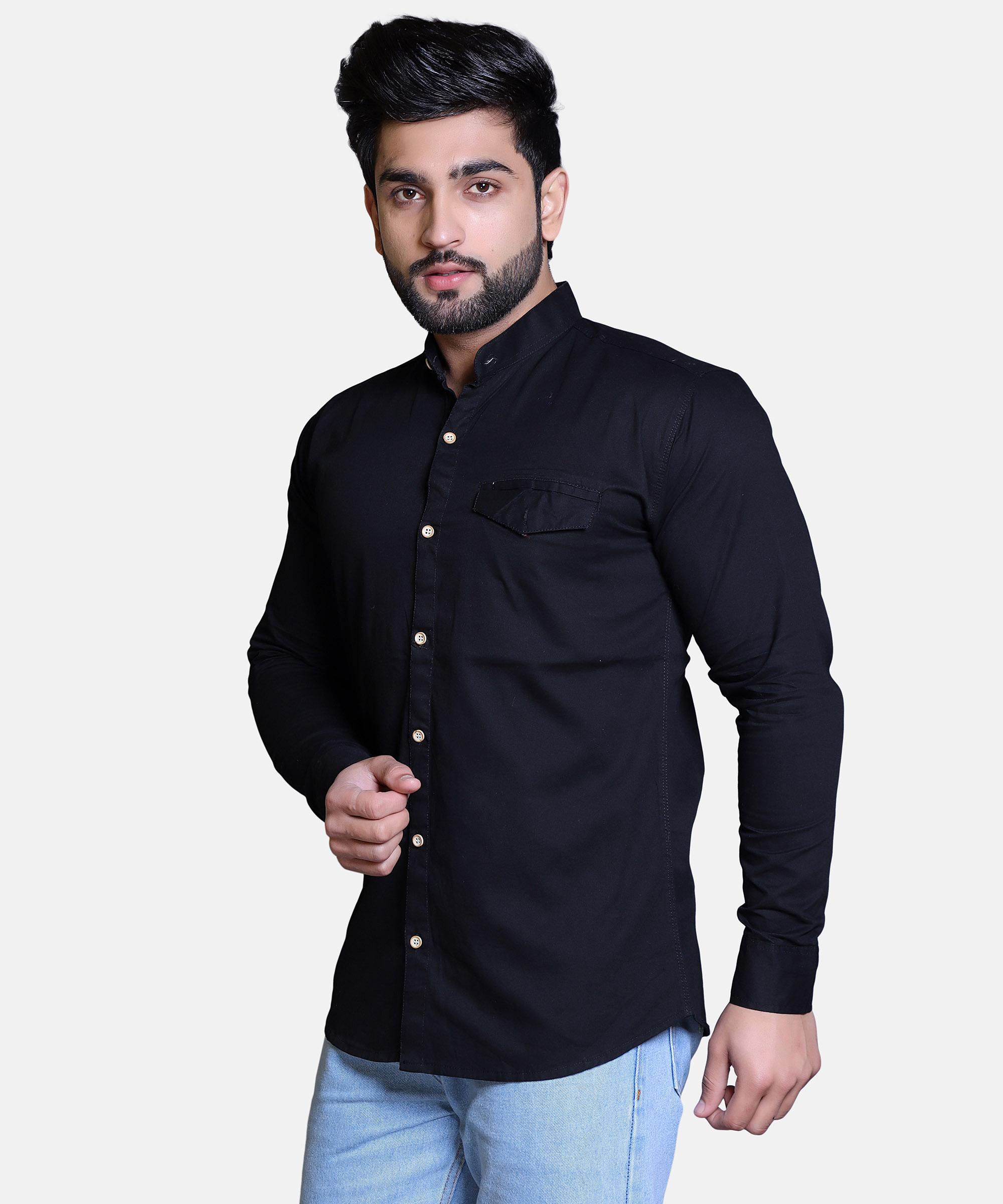 Dark Navy solid casual shirt, has a collar, a button placket, 2 pocket, long sleeves
