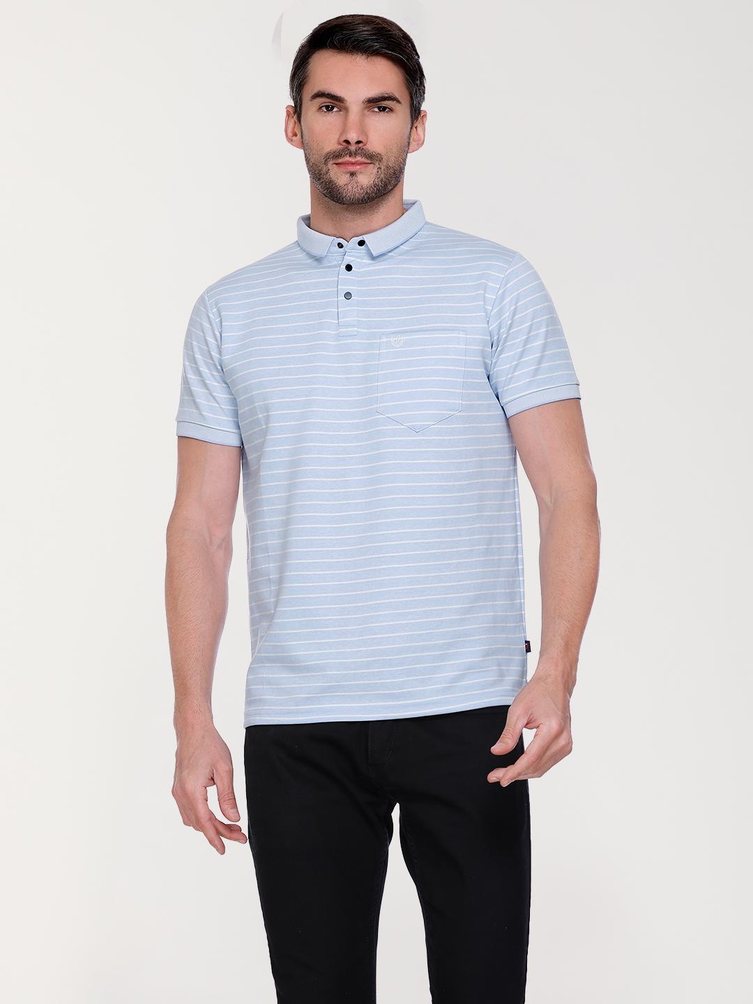 Half Sleeve Horizontal Striped G. Blue Polo - Neck T-shirt - 3xl