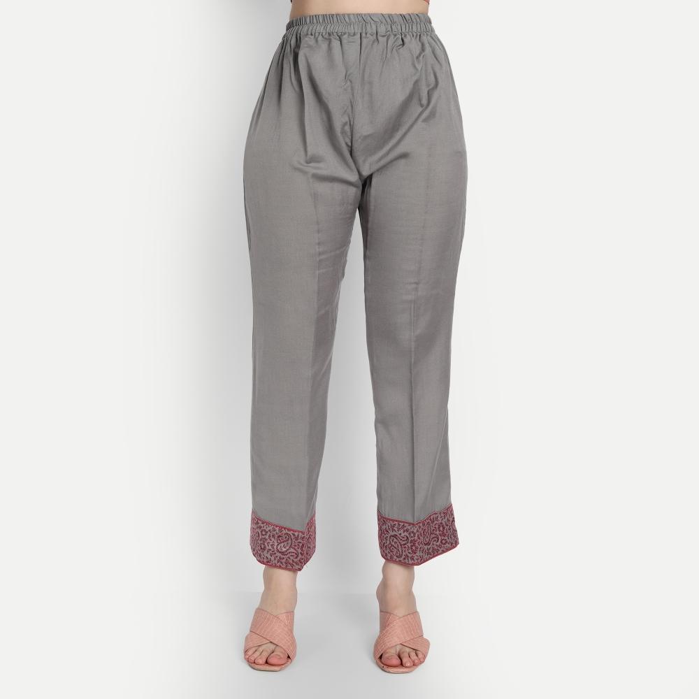 Hemkunt Fabrics Viscose/pashmina Printed Unstitched Kurta And Palazzo Material (light Grey)