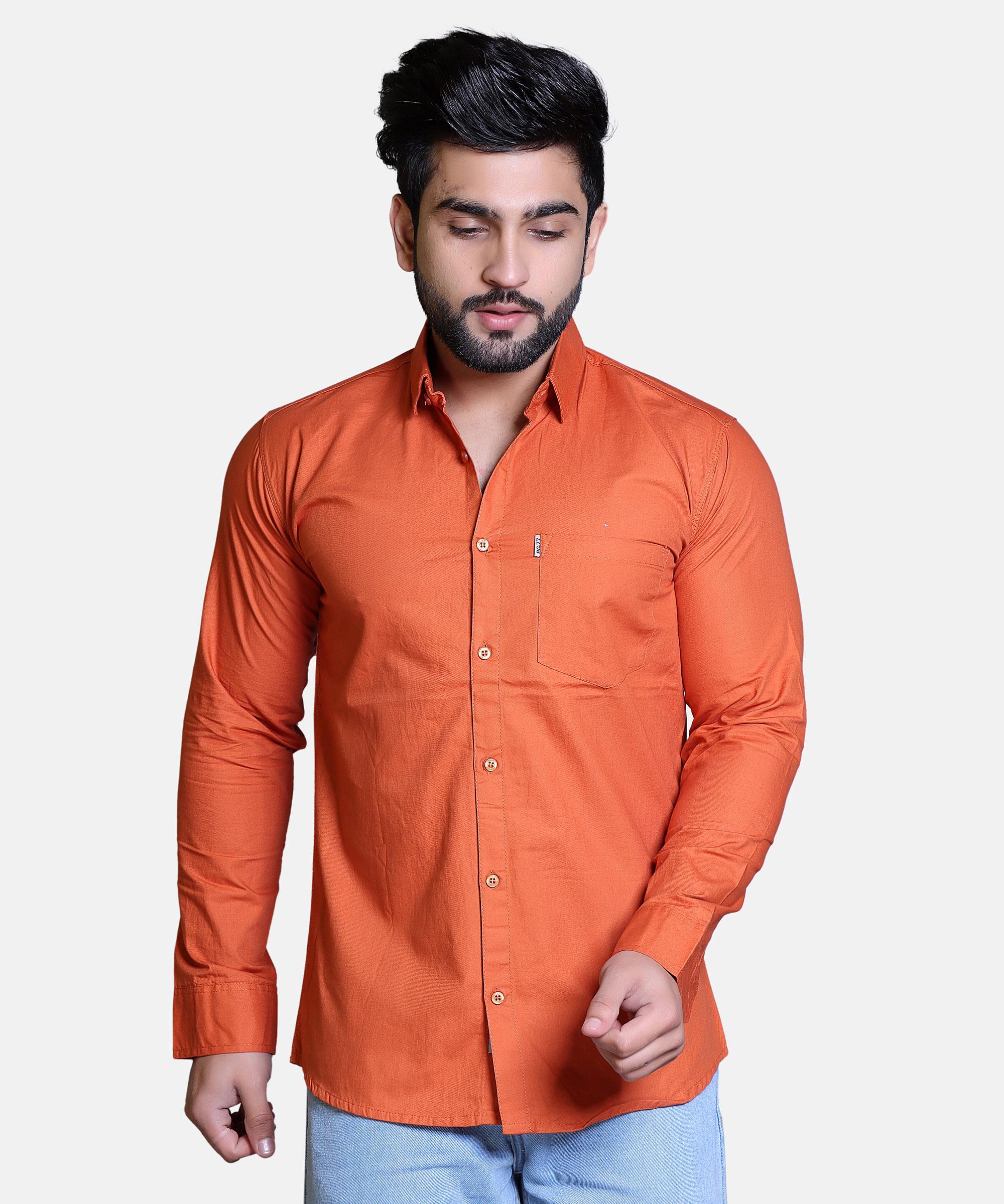 Men Shirt Full Sleeve – Orange - M