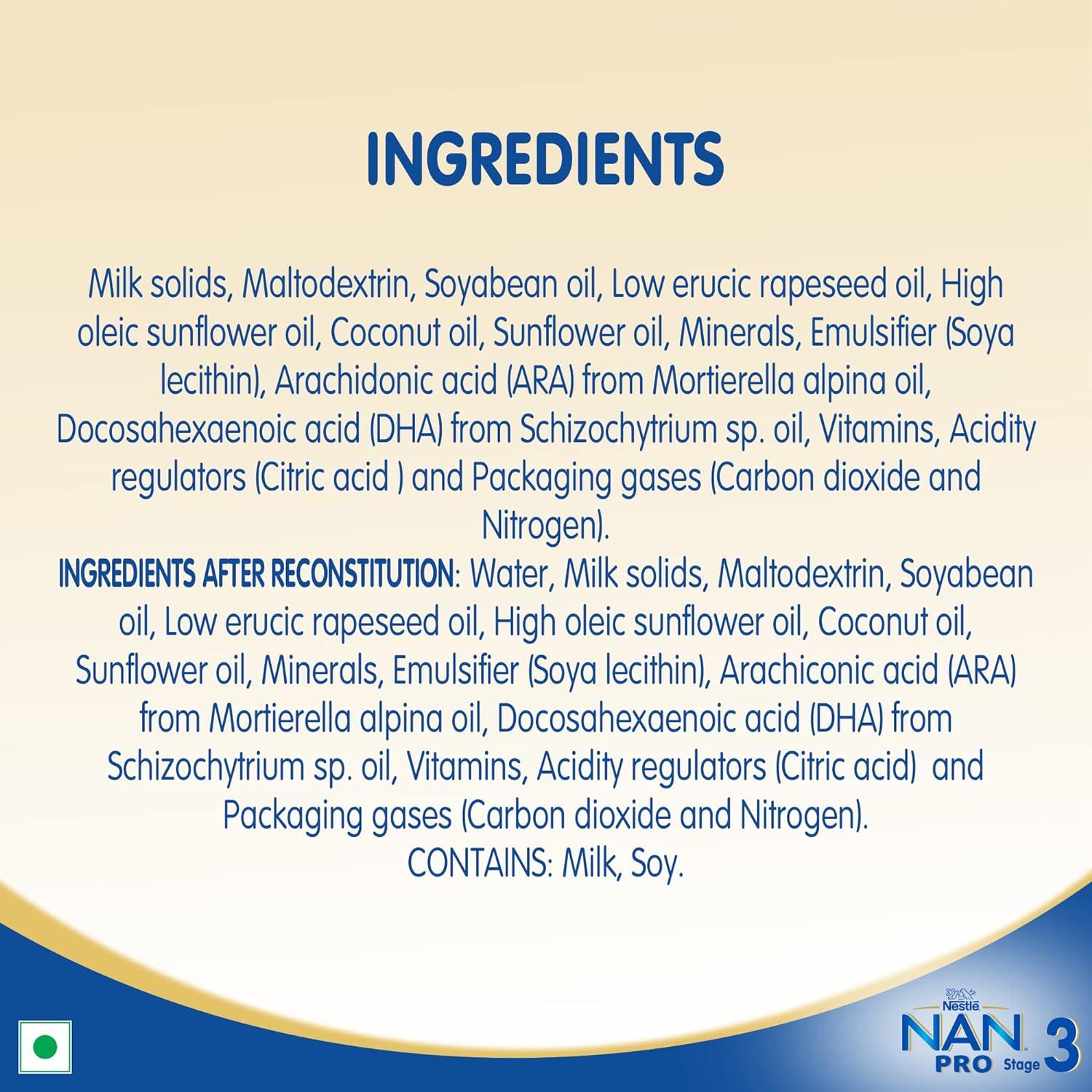 - Nestlé NAN PRO 3 contains Iron. Iron helps support normal cognitive development.