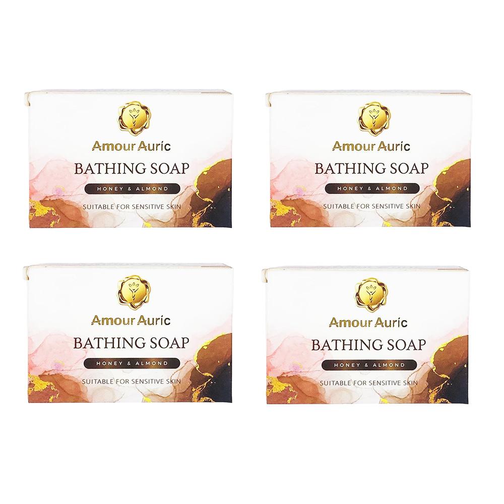 Healthauric Nourishing Bathing Soap With Honey & Almond | Gentle Cleansing | Moisturizing & Soothing | Ideal For Sensitive Skin & Daily Use | 100g Pack Of 4